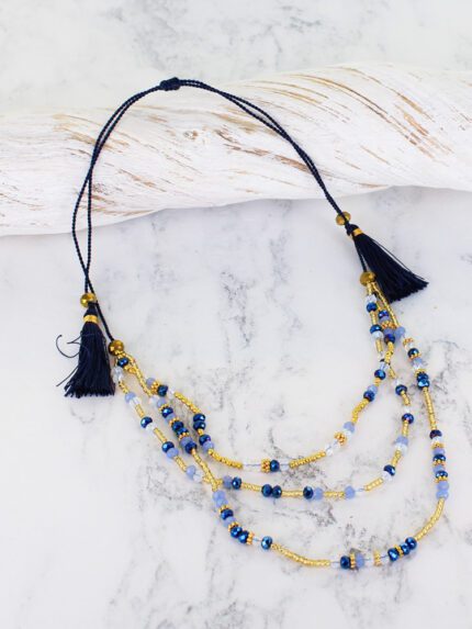 PP6209BLU DELICATE CRYSTAL BEAD TASSEL NECKLACE