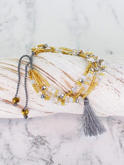 PP6210GY DELICATE CRSYTAL BEAD BRACELET (ADJUSTABLE)