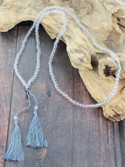 NB1403GY LONG GLASS BEAD TASSEL NECKLACE