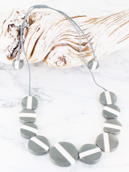 JP1014GY STRIPED RESIN DISC NECKLACE – GREY
