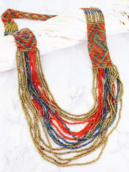 MD6202BG LONG BEADED AZTEC NECKLACE