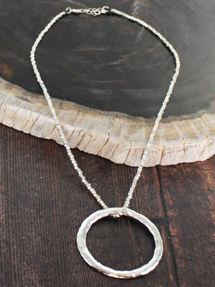 Login to see pricesSP015R BEATEN RING NECKLACE WITH THREADED SILVER CHAIN [SILVER-PLATE]
