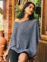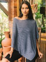 AF6901BLU DOUBLE-KNIT POPCORN PONCHO – DENIM BLUE