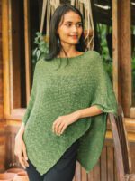 AF6901GN DOUBLE-KNIT POPCORN PONCHO – GREEN