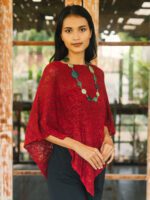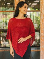AF6901R DOUBLE-KNIT POPCORN PONCHO – RED