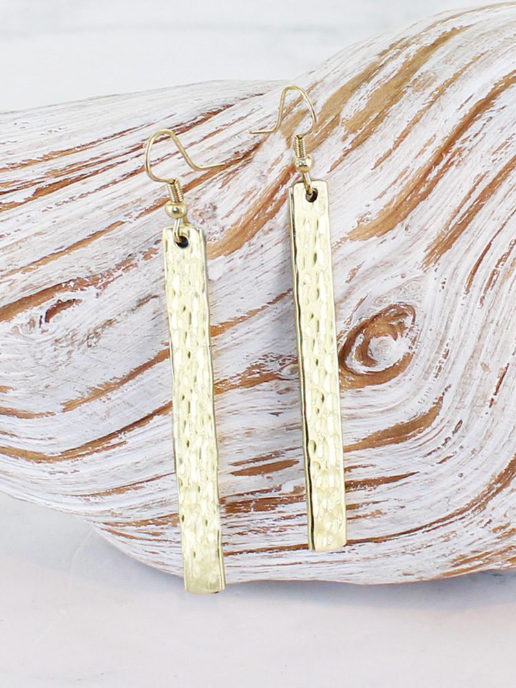 AK1716G LONG RECTANGULAR BEATEN EARRINGS