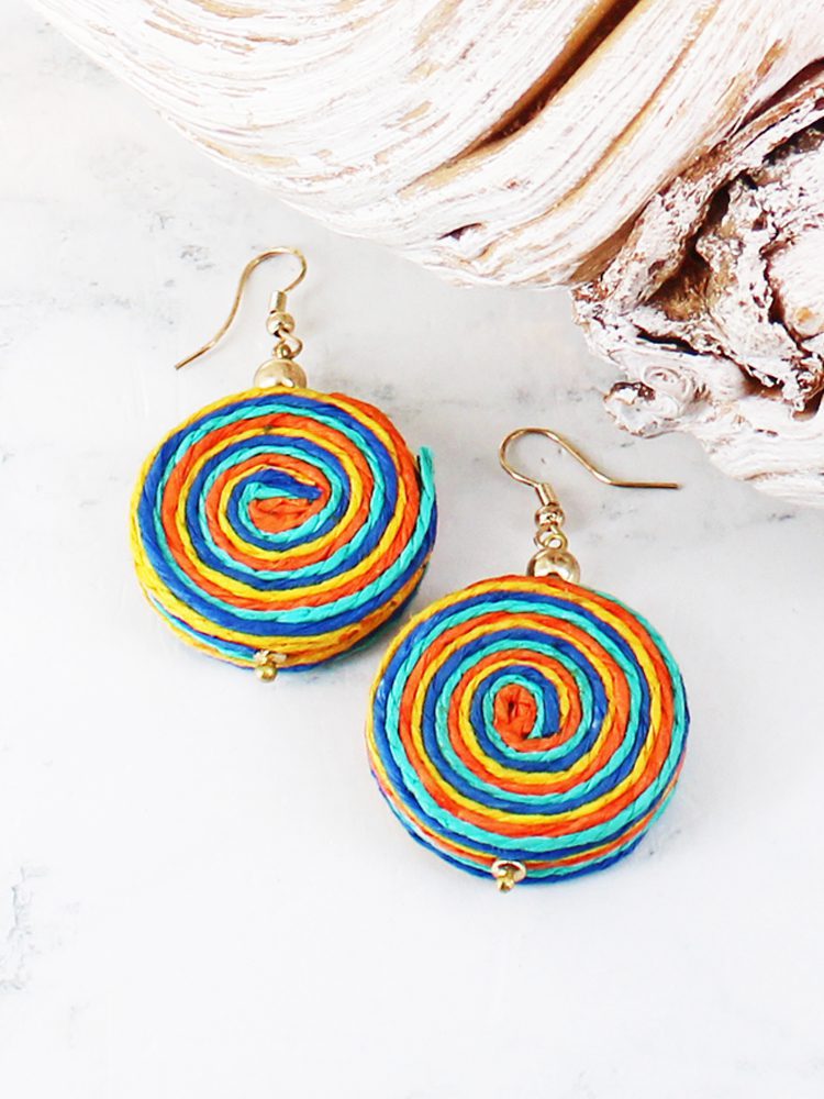 AY1415 MIXED COLOUR RAFFIA DISC EARRINGS