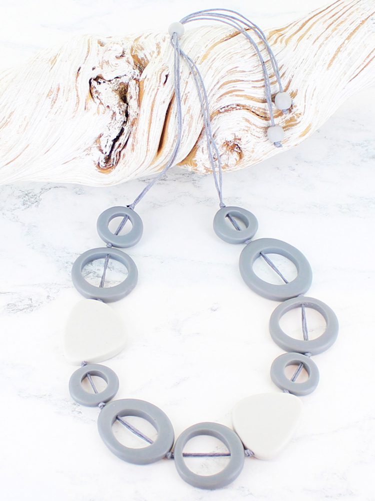 BB1202GY LONG ASYMMETRIC RESIN HOOP & TRIANGLE NECKLACE