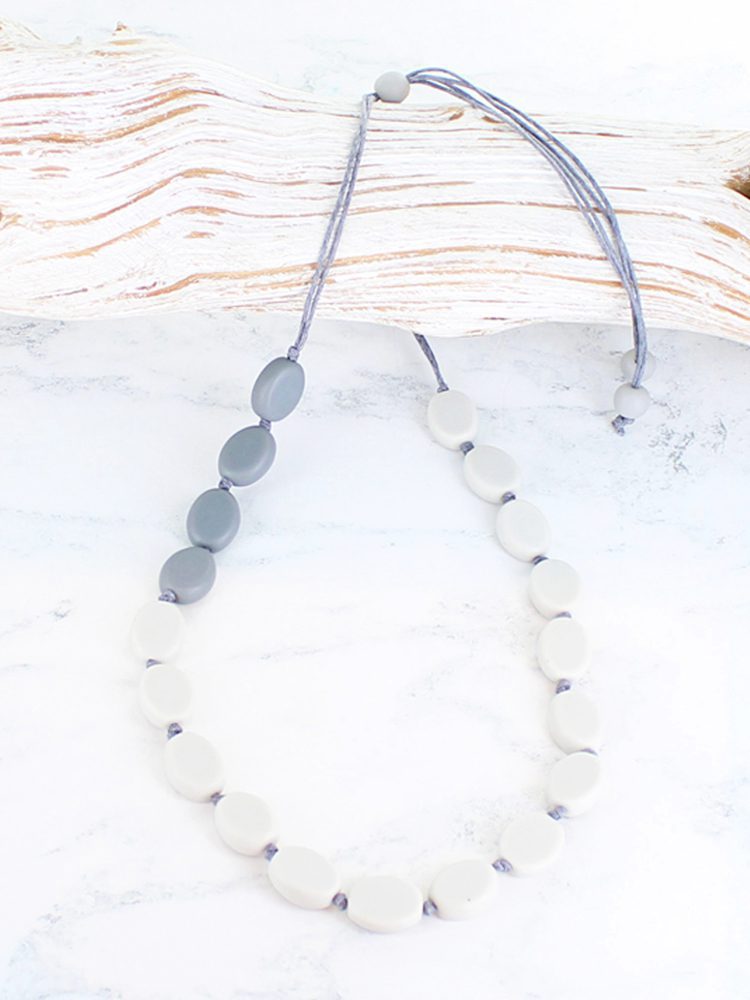 BB1206GY SIMPLE TWO-TONE RESIN PEBBLE NECKLACE (ADJUSTABLE)