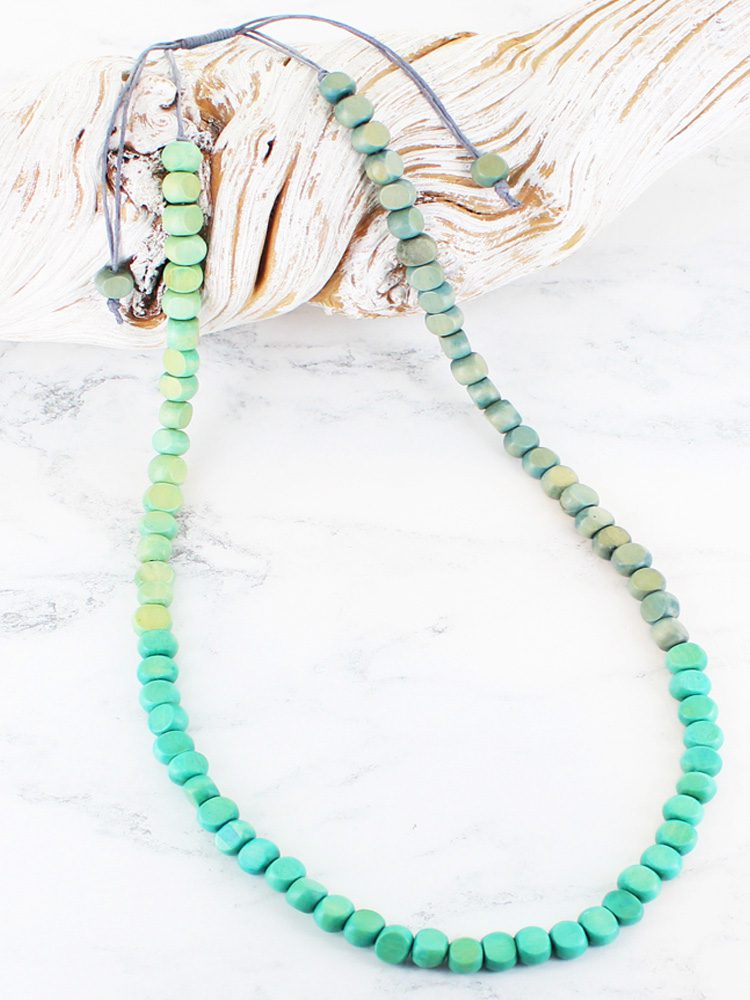 BB1211BLU SIMPLE WOODEN STRAND TONAL NECKLACE