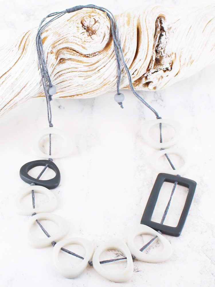 BB1401GY RESIN RECTANGLE & HOOP NECKLACE