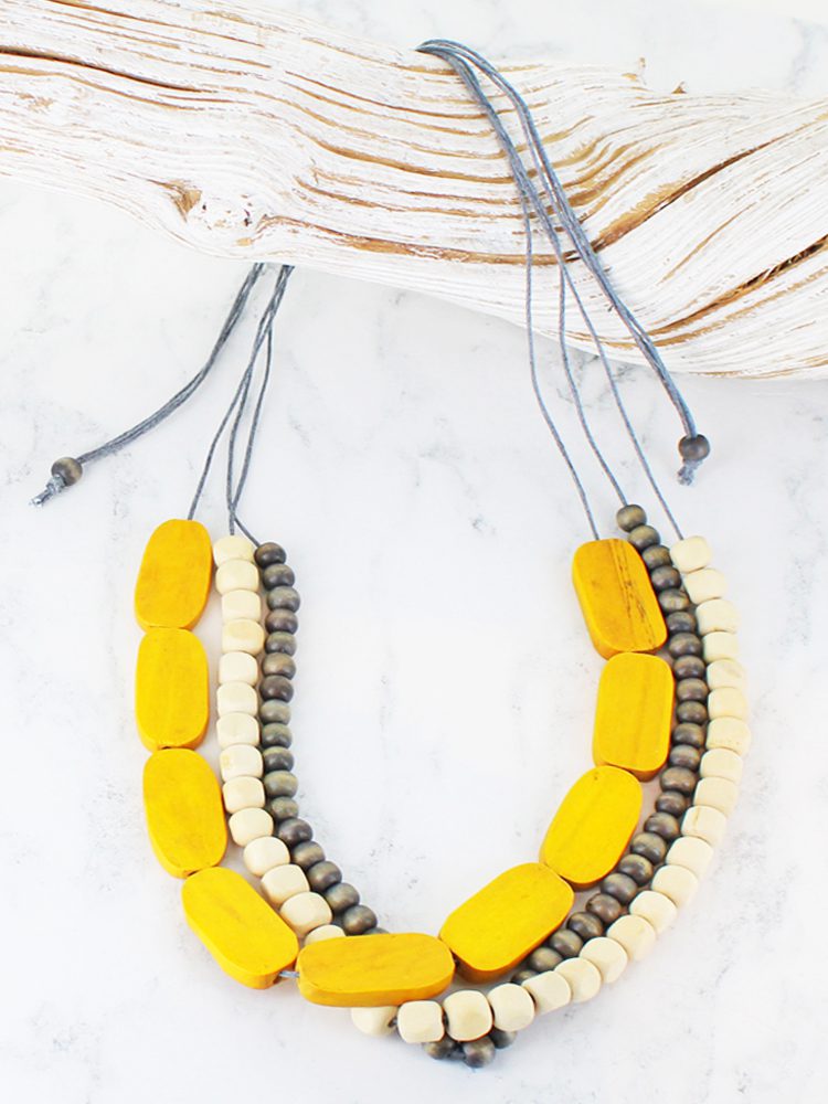 BB1404MU THREE-STRAND WOODEN BEAD NECKLACE