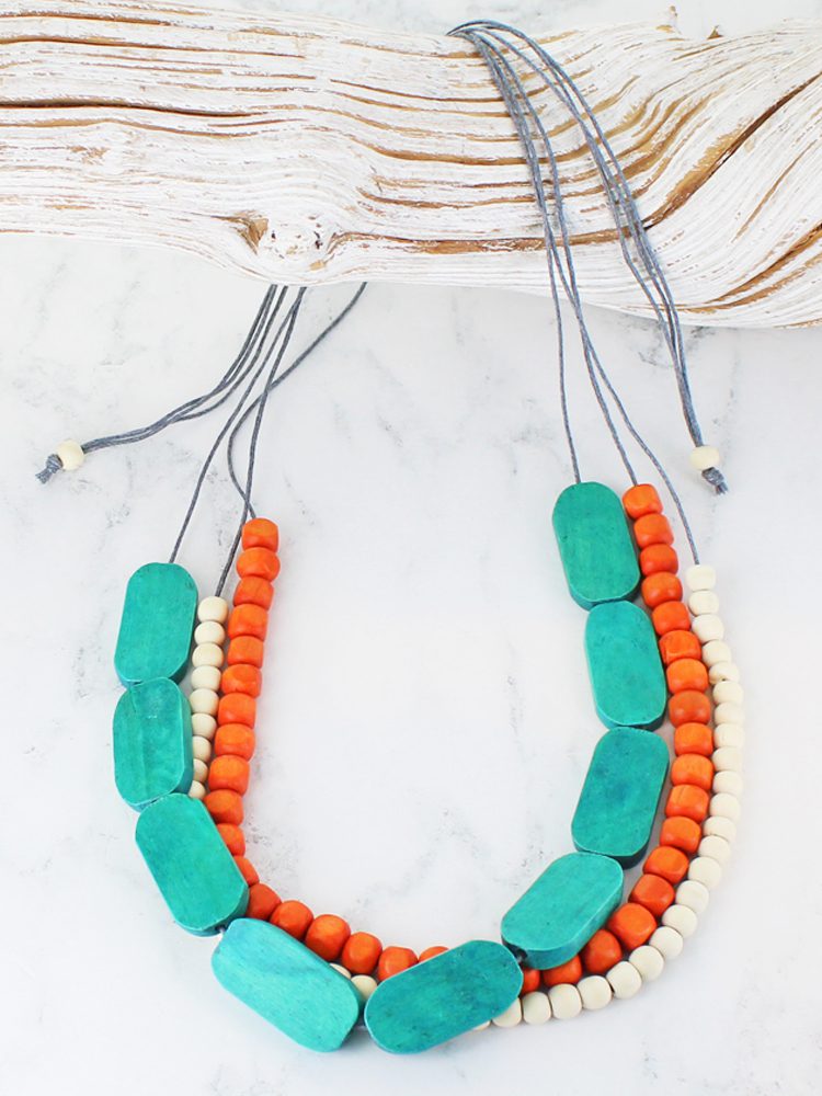 BB1404TU THREE-STRAND WOODEN BEAD NECKLACE