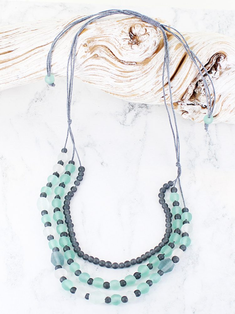 BB1410GY TRIPLE STRAND RECYCLED GLASS NECKLACE