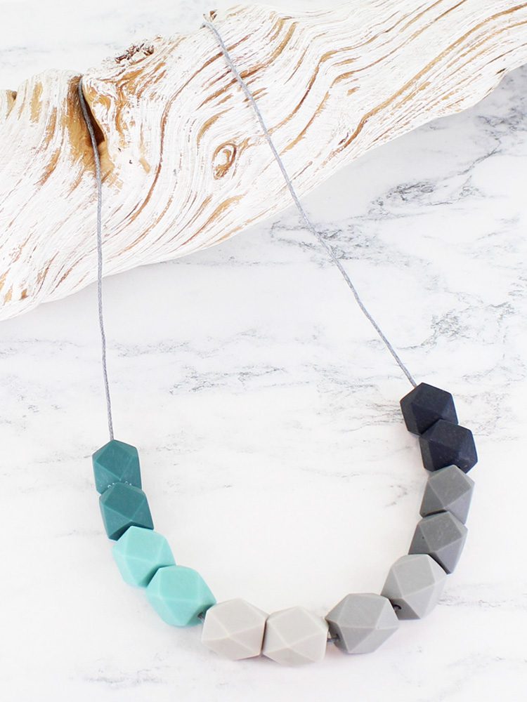 BB6101BLU TONAL RESIN FACETED CUBE NECKLACE
