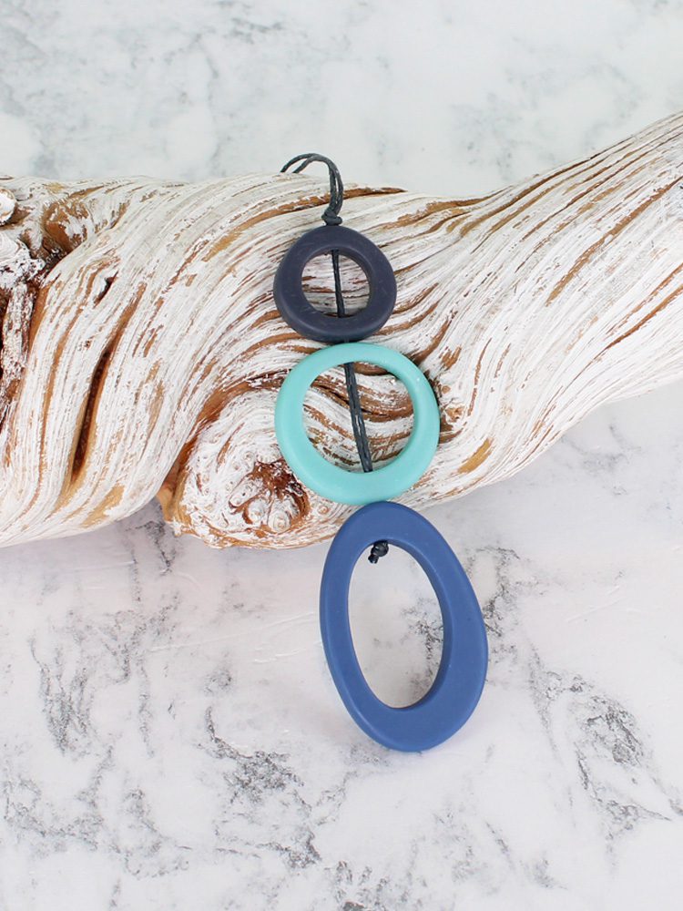 BB6204BLU TRIPLE RESIN HOOP PENDANT NECKLACE
