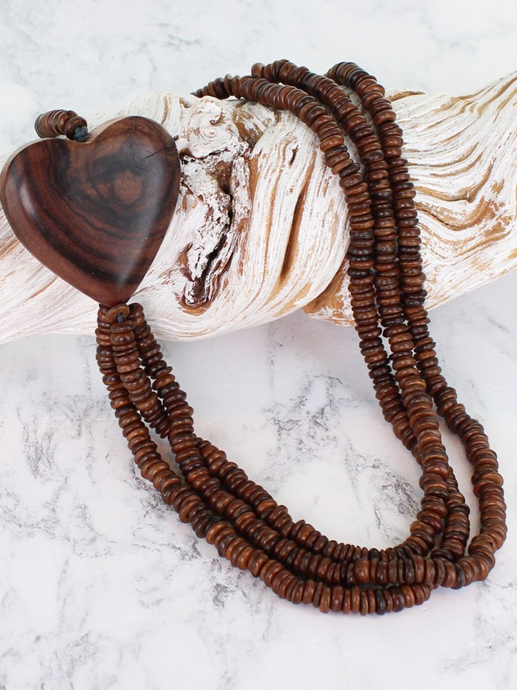 BB6208BR MULTI-STRAND COCONUT BEAD NECKLACE WITH HEART
