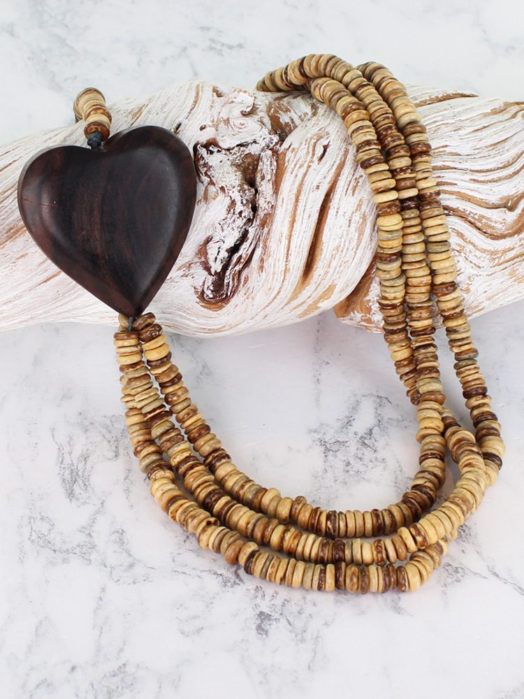 BB6208N MULTI-STRAND COCONUT BEAD NECKLACE WITH HEART