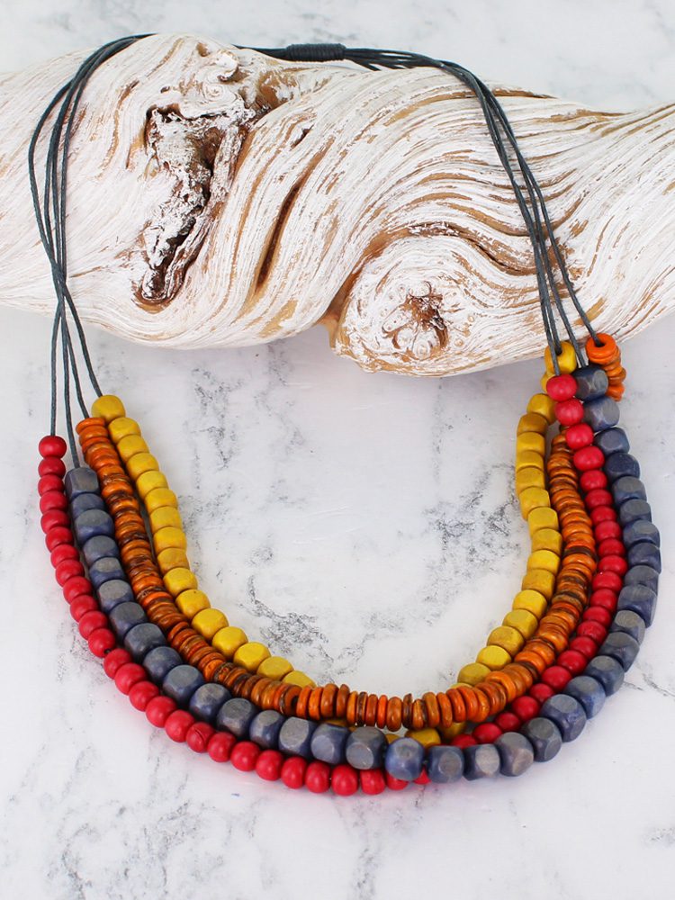 BB6214 MIXED COLOUR 4-STRAND WOODEN NECKLACE