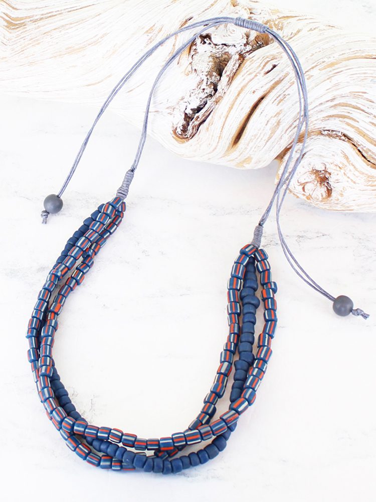 BB6301BLU THREE-STRAND GLASS BEAD NECKLACE