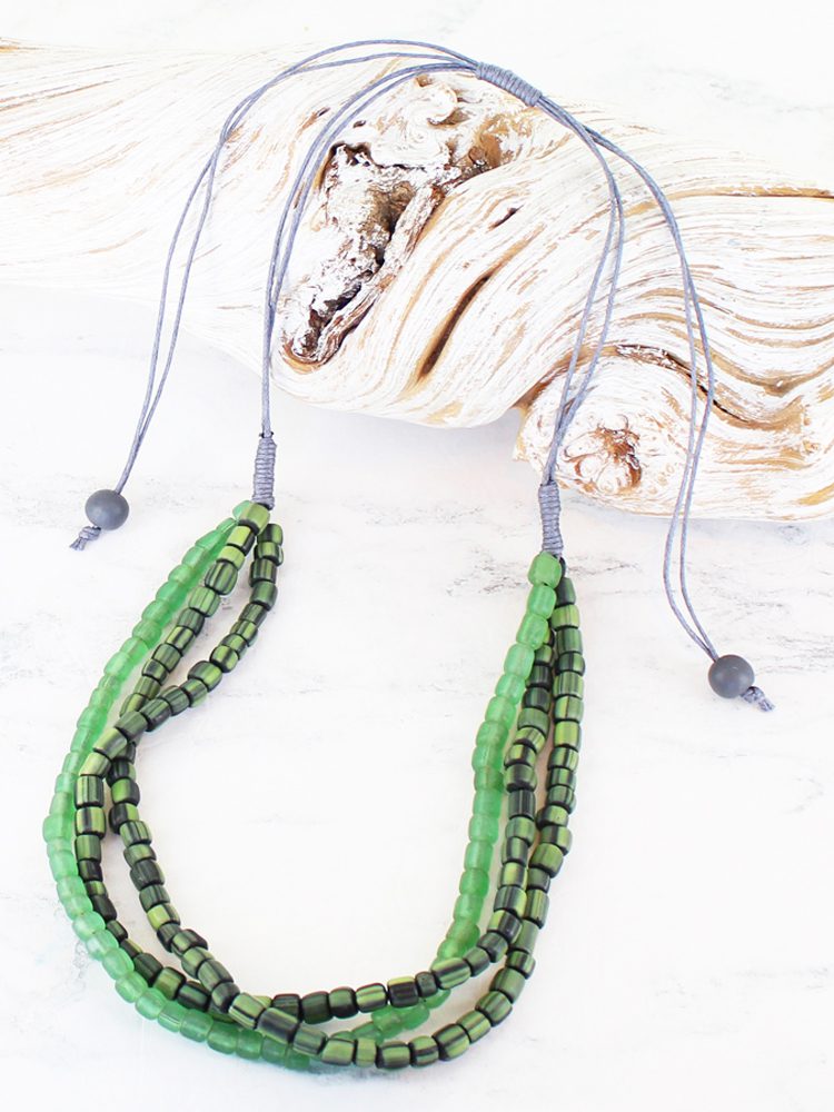 BB6301GN THREE-STRAND GLASS BEAD NECKLACE