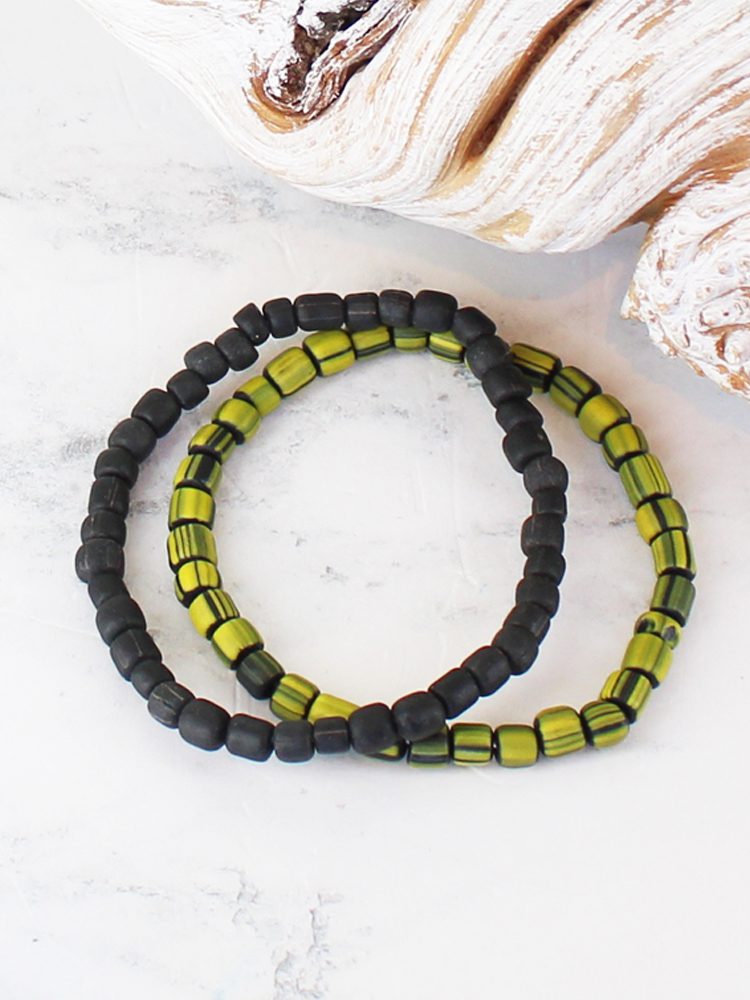 BB6302LM SET OF 2 ELASTICATED GLASS BRACELETS