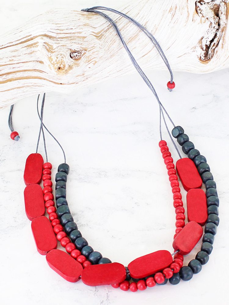 BB6303R 3-STRAND WOODEN BEAD NECKLACE