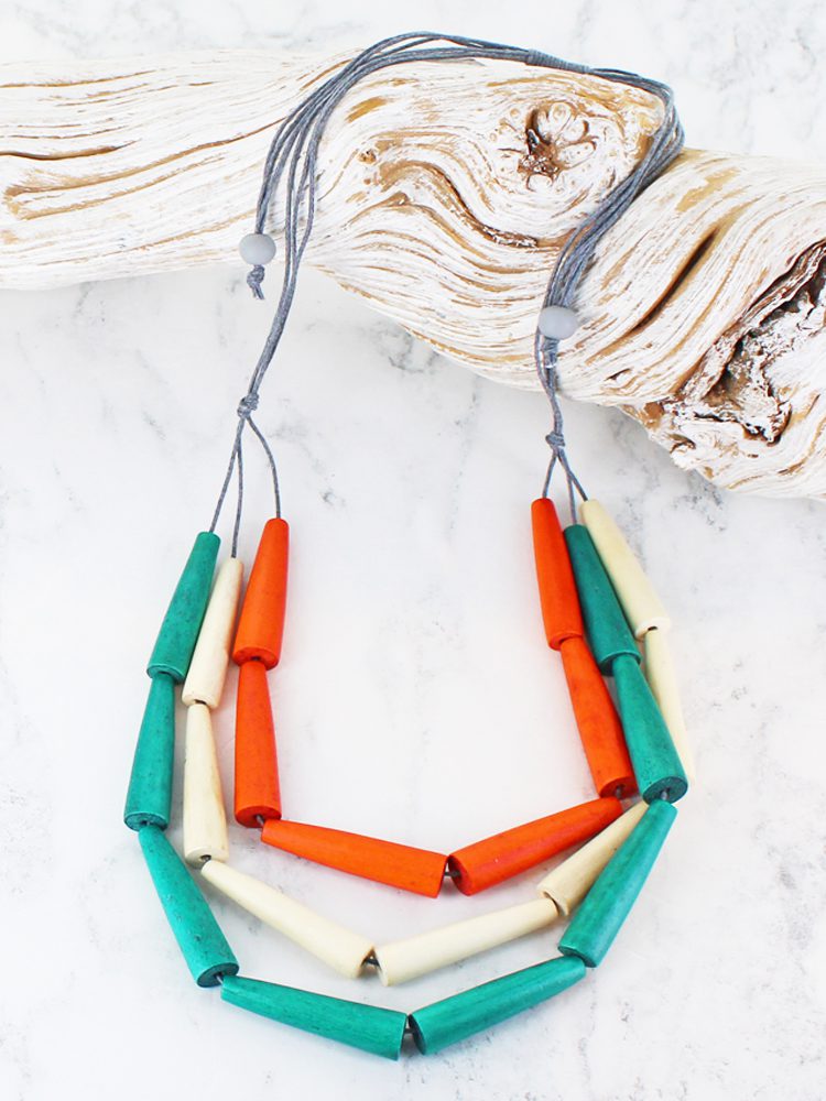 BB6305TU 3-STRAND WOODEN CONE NECKLACE