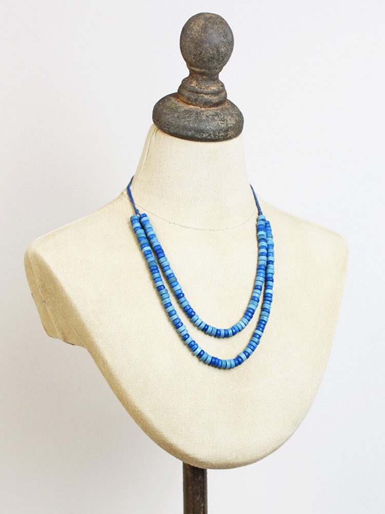 BB6401BLU DOUBLE STRAND GLASS BEAD NECKLACE