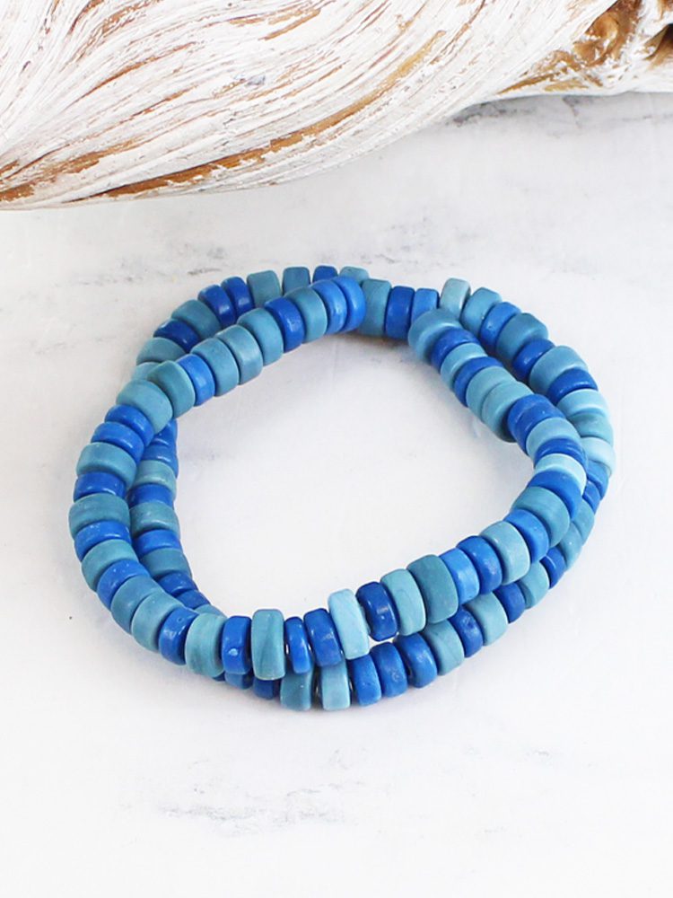 BB6402BLU ELASTICATED DOUBLE GLASS BEAD BRACELET