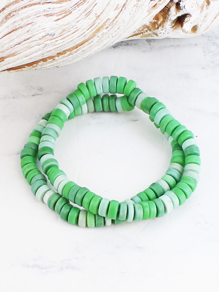 BB6402GN ELASTICATED DOUBLE GLASS BEAD BRACELET
