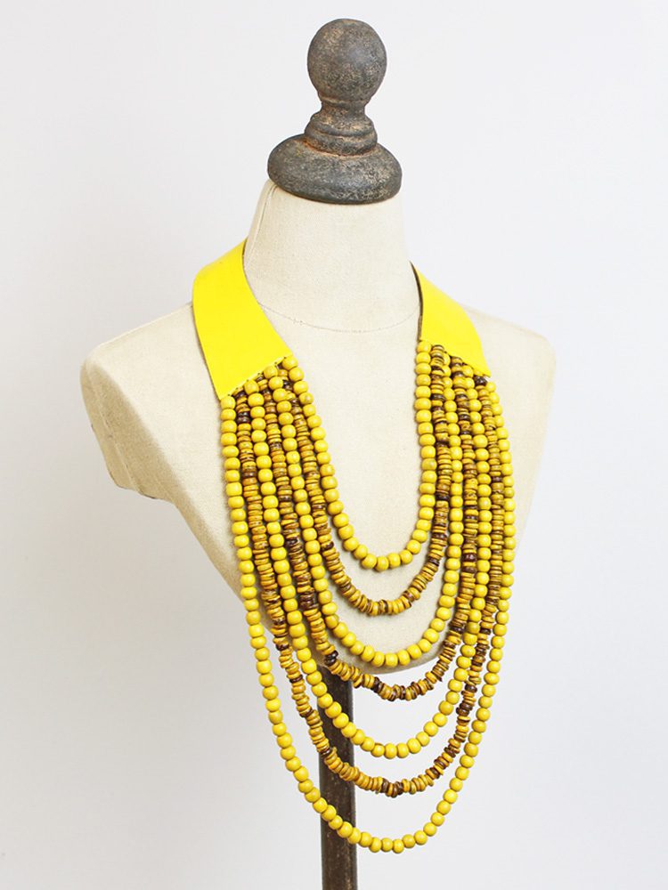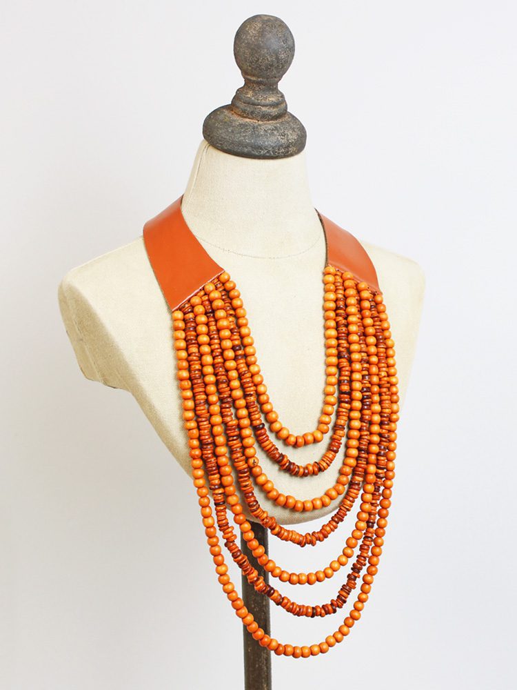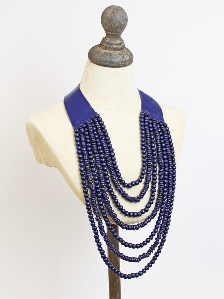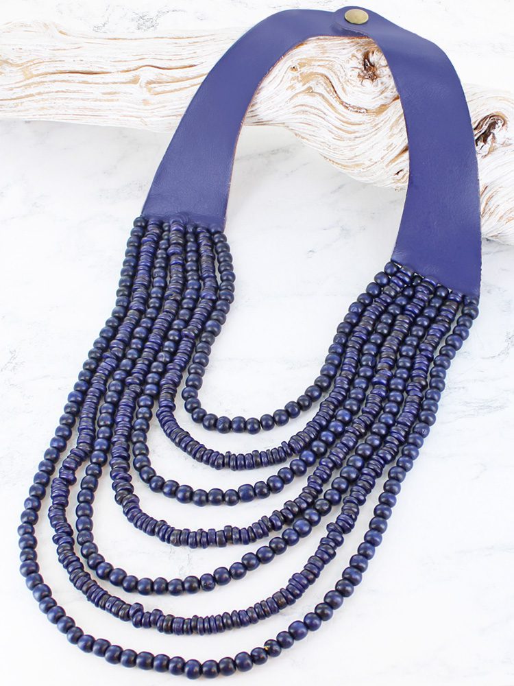 BB6910BLU MULTI-STRAND WOOD & LEATHER NECKLACE