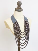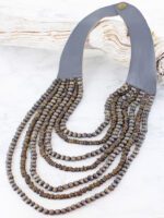 BB6910GY MULTI-STRAND WOOD & LEATHER NECKLACE