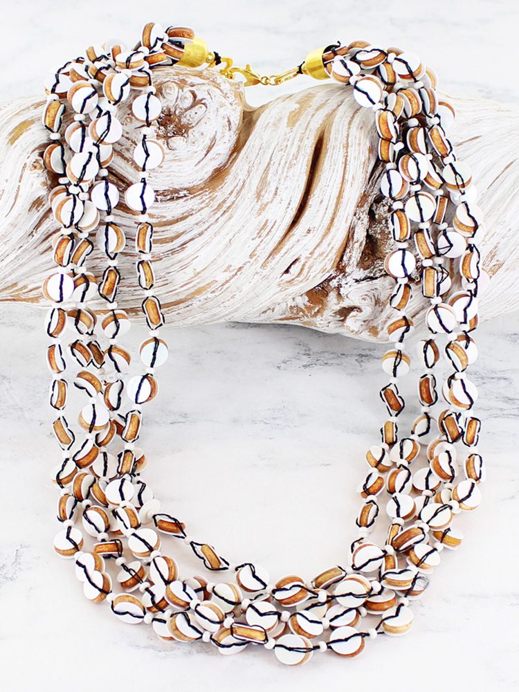 DC1304W WOODEN BEAD & SEQUIN NECKLACE