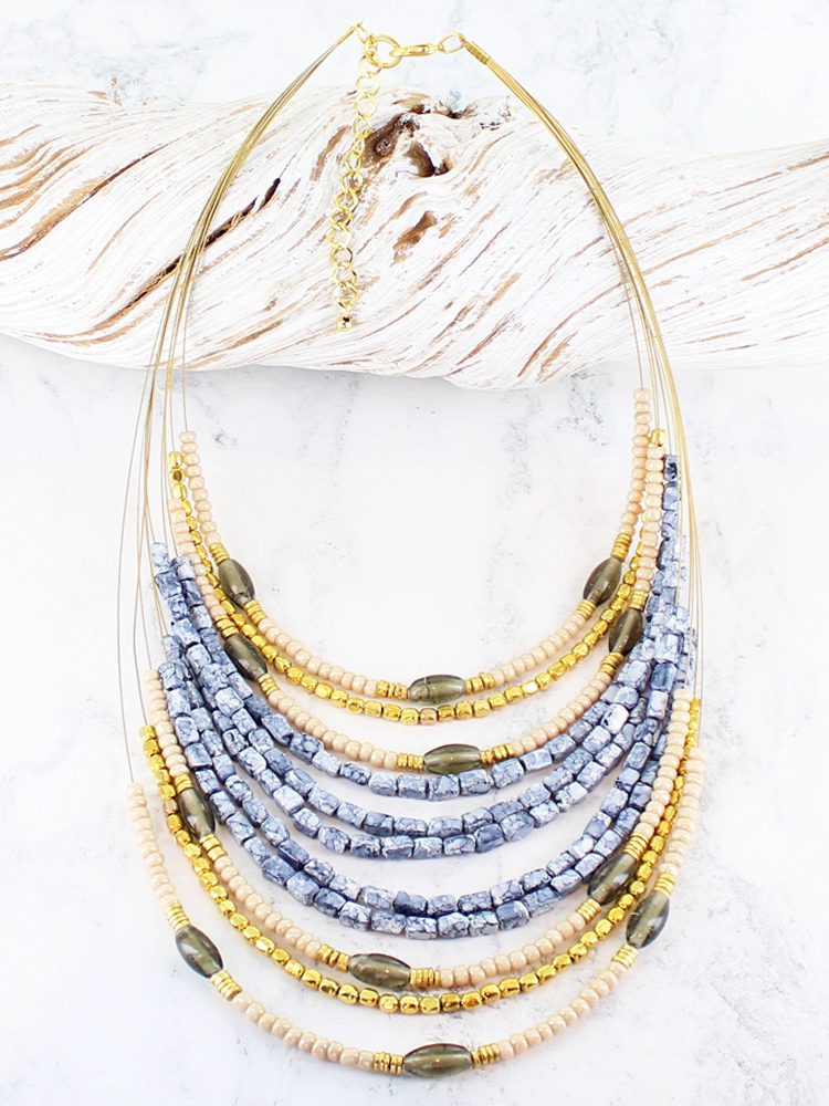 DC1401GY MULTI-STRAND BEADED COLLAR NECKLACE