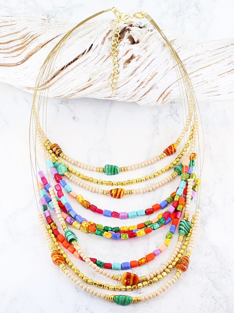 DC1401M MULTI-STRAND BEADED COLLAR NECKLACE