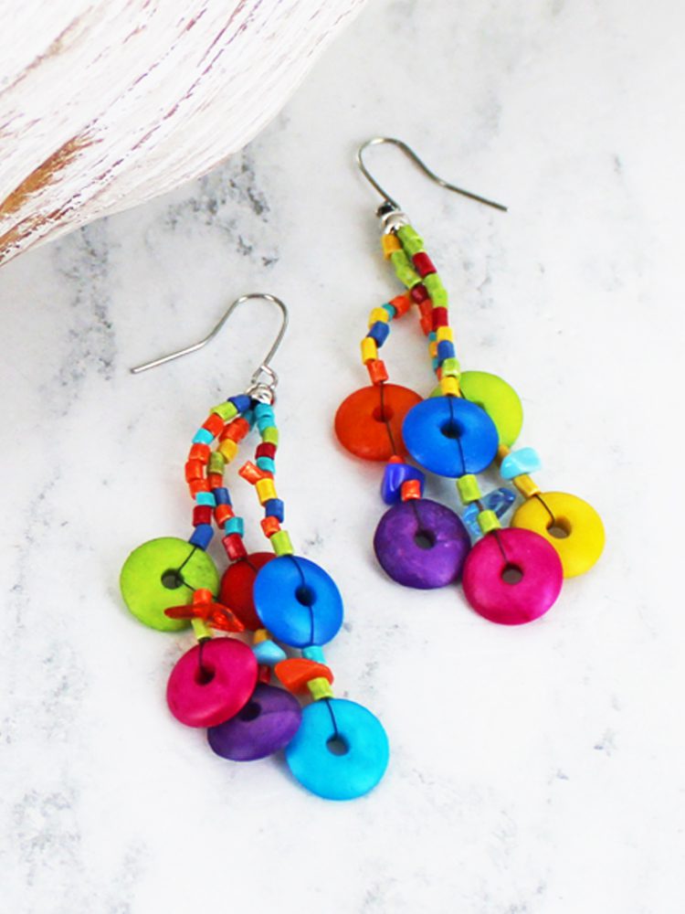DC1408M WOODEN BUTTON DROP EARRINGS