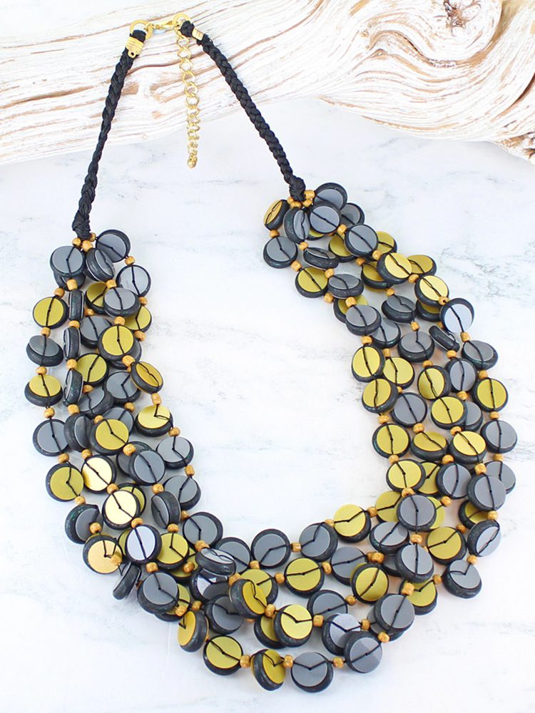DC6301MU CHUNKY WOODEN BEAD & SEQUIN NECKLACE