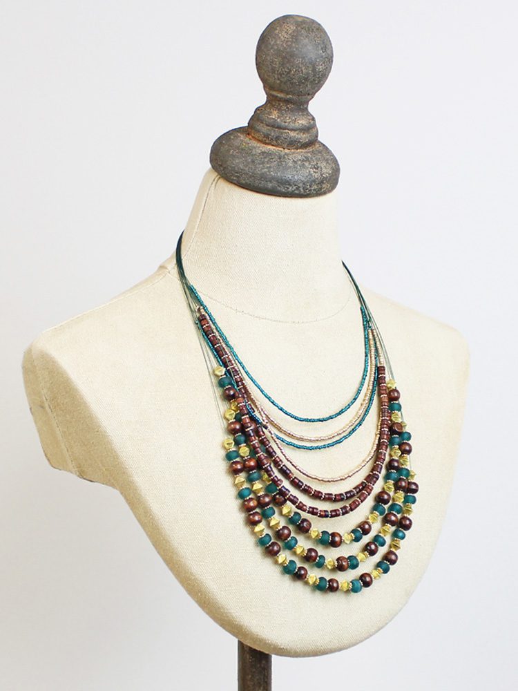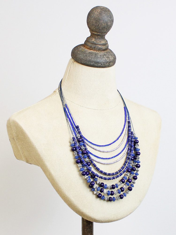 DC6401BLU MULTI-STRAND LAYERED BEAD NECKLACE