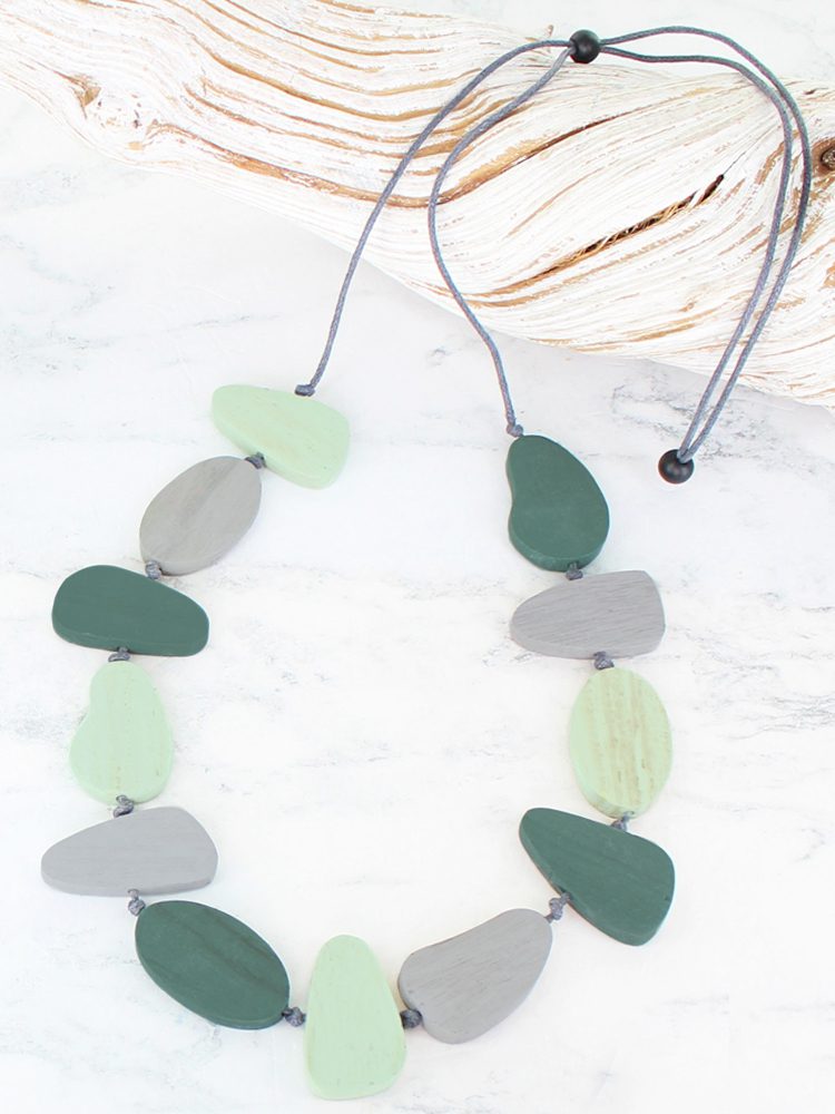 FB1303GN WOODEN PEBBLE NECKLACE