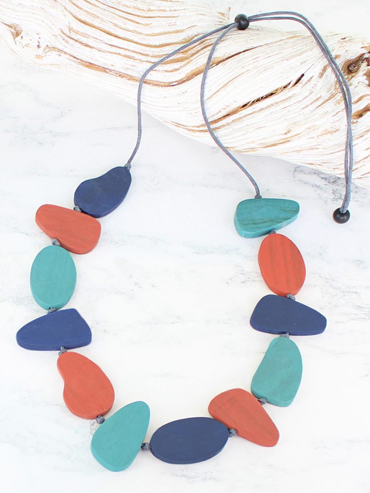 FB1303OR WOODEN PEBBLE NECKLACE