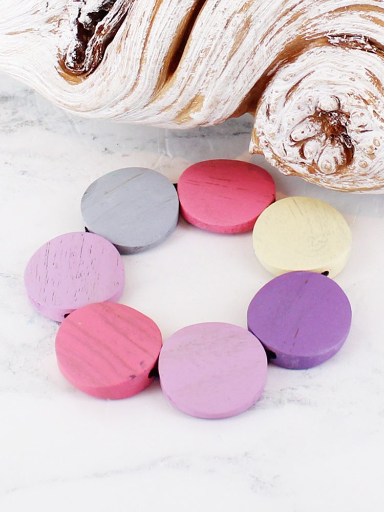 FB1305LC ELASTICATED WOODEN DISC BRACELET