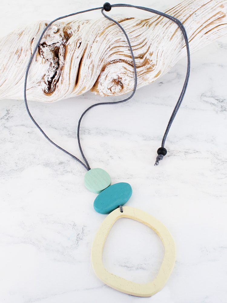 FB1308CR WOODEN OPEN HOOP PENDANT NECKLACE
