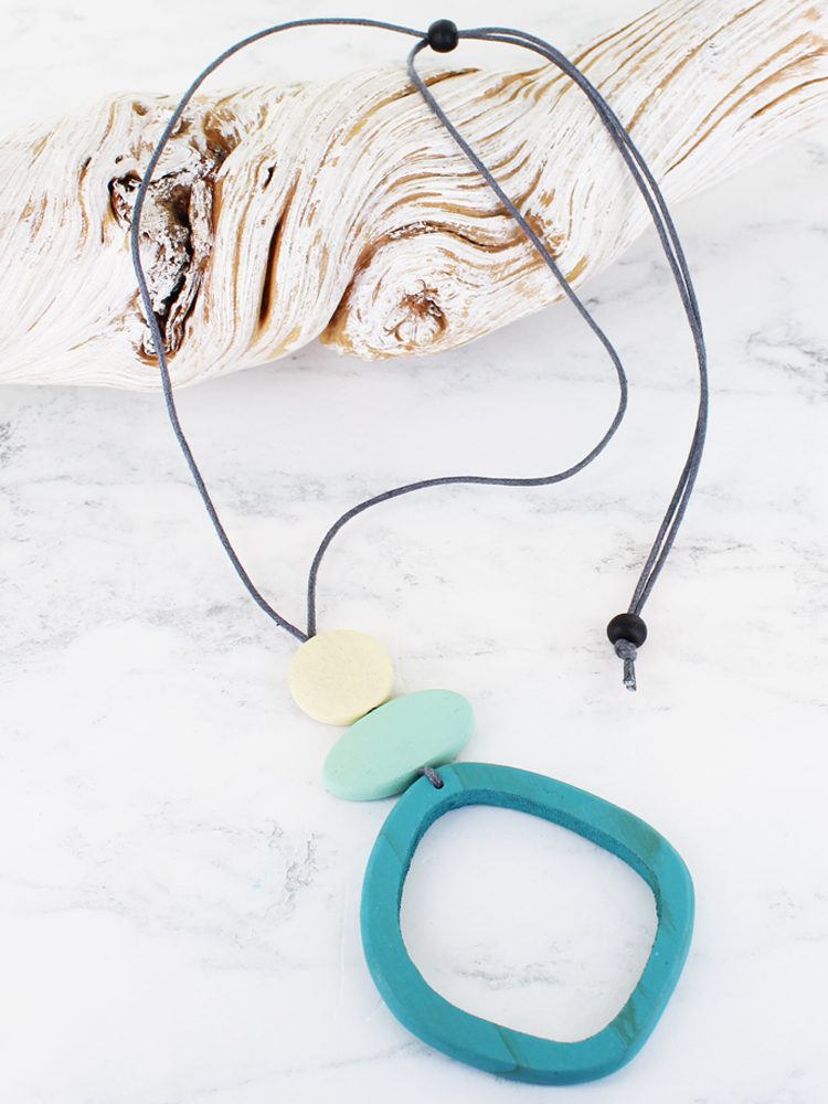 FB1308TL WOODEN OPEN HOOP PENDANT NECKLACE