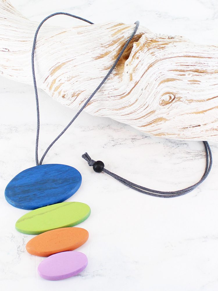 FB1309M STACKED WOODEN OVAL PENDANT NECKLACE