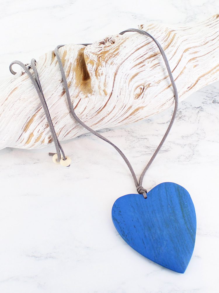 FB1310BLU SIMPLE WOODEN HEART PENDANT NECKLACE