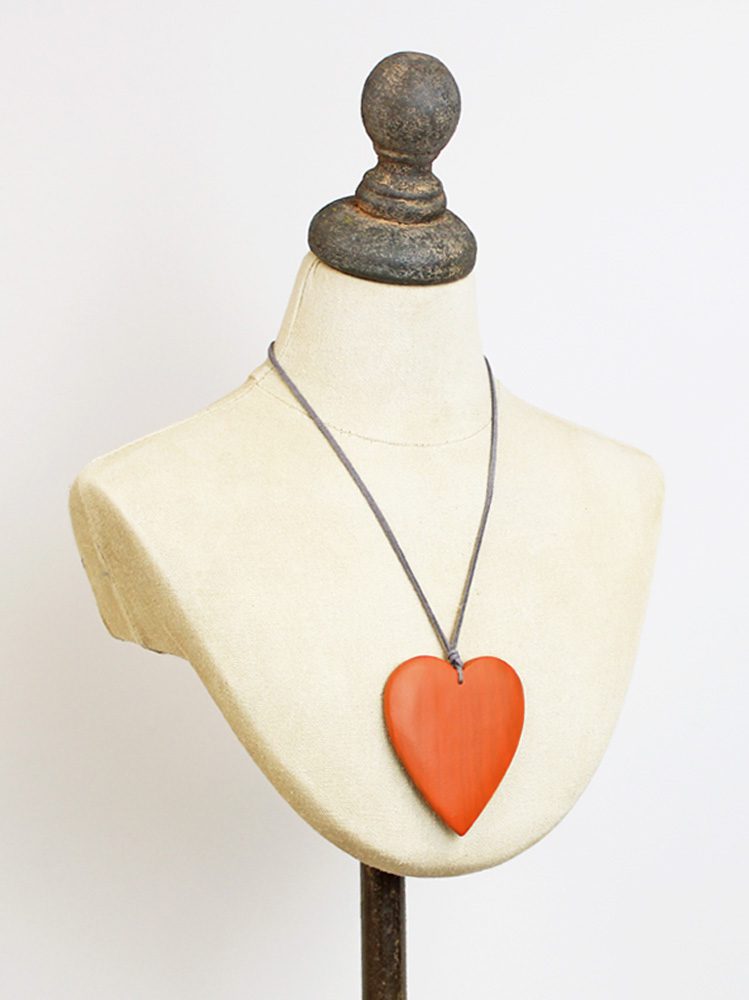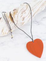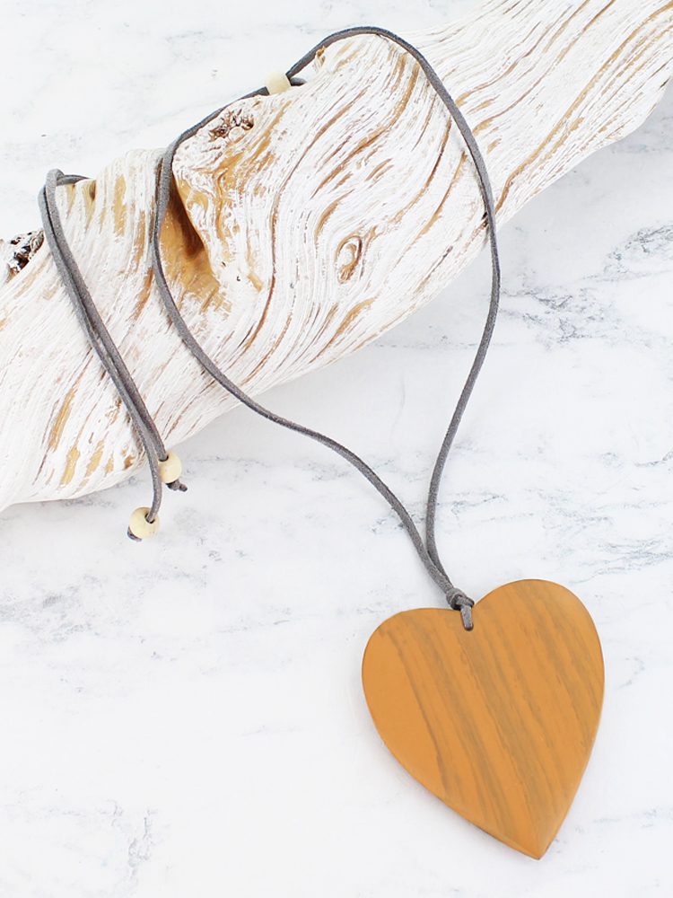 FB1310MU SIMPLE WOODEN HEART PENDANT NECKLACE
