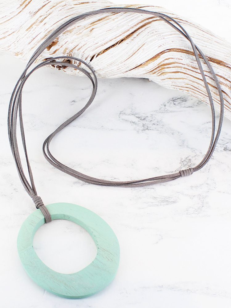 FB1311MT WOODEN OVAL RING PENDANT NECKLACE