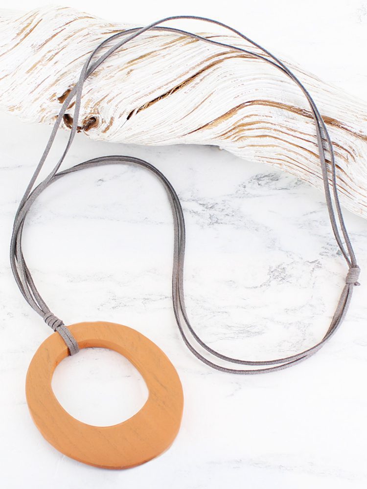 FB1311OR WOODEN OVAL RING PENDANT NECKLACE