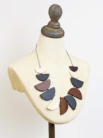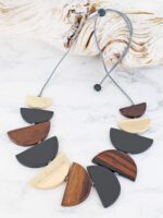 FB1403BL WOODEN HALF MOON FAN NECKLACE